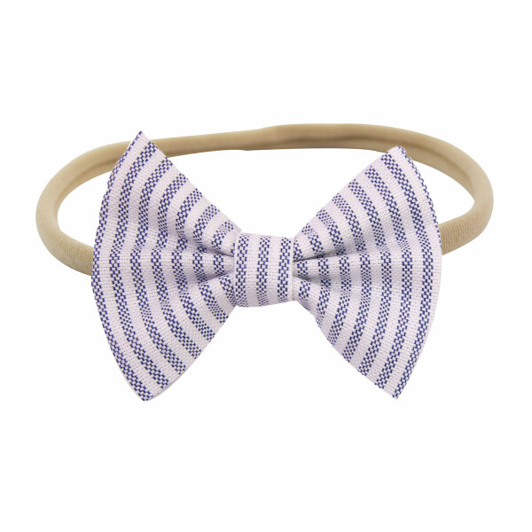 Bandeau bébé fille noeud réalisé en tissu oxford rayé bleu. Ultra chic pour cet été !