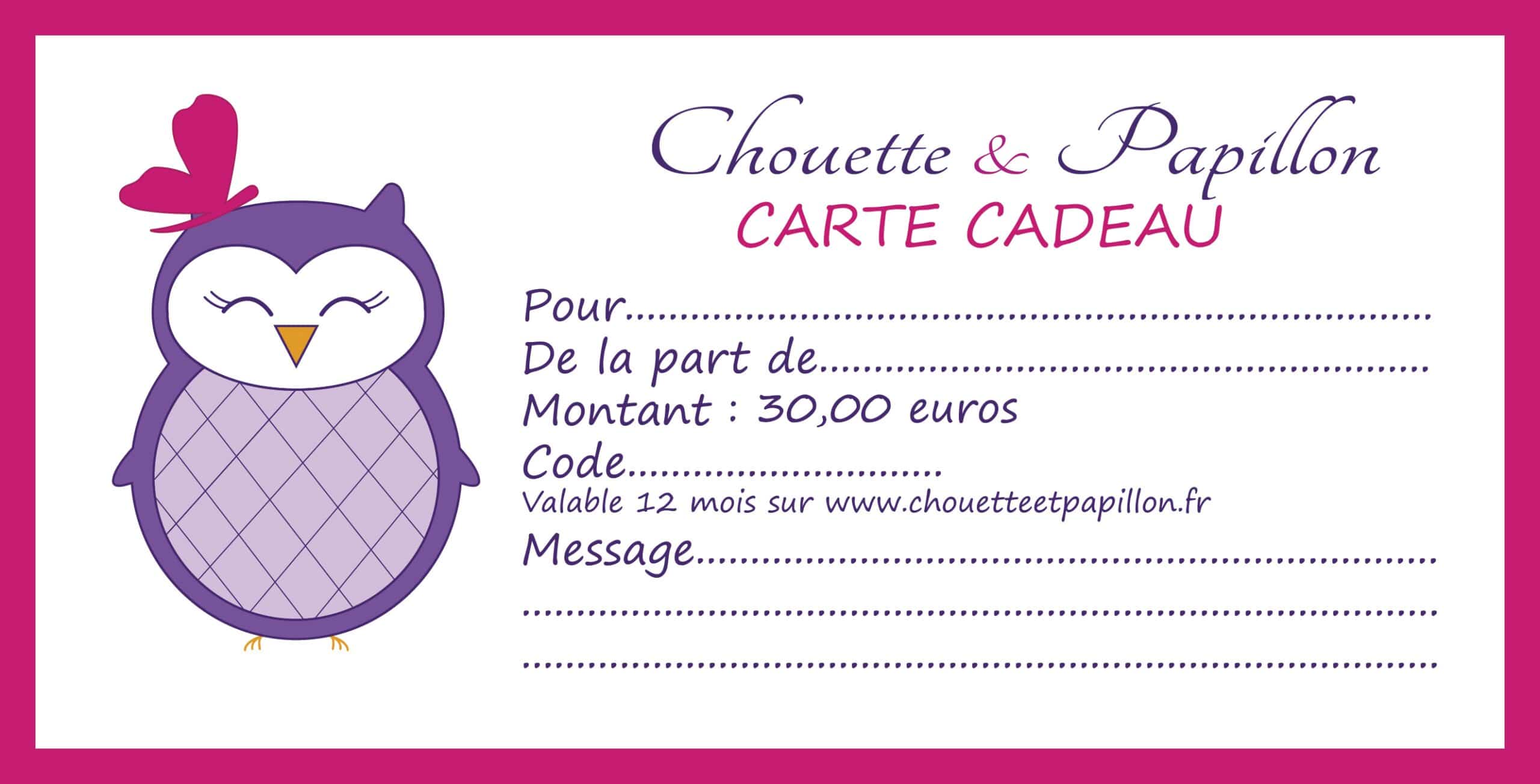 Vous cherchez un cadeau à offrir ? la carte cadeau Chouette et Papillon est idéale pour faire plaisir à coup sûr !